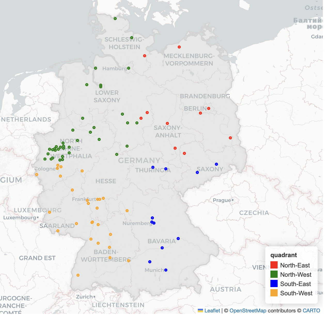 - Take the area of Germany and subdivide it into areas using H3 or A5.
